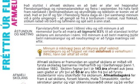 Við bendum á flokkinn Spurt&svarað sem er á heimasíðu skólans (neðarlega á forsíðu). Þar má finna svör við öllu því helsta sem foreldrar og nemendur leita oftast svara við.