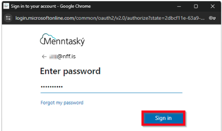 Settu Flensborgar lykilorðið þitt og veldu "Sign in"