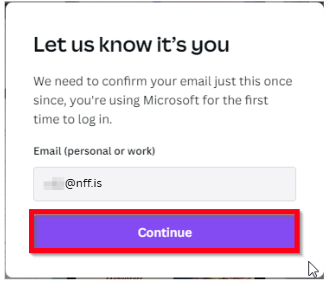 Í sumum tilfellum sendir Canva þér staðfestingarkóða á NFF-netfangið þitt. Þá þarftu einfaldlega að skrá þig inn á outlook.office.com og þar finnur þú kóðann.