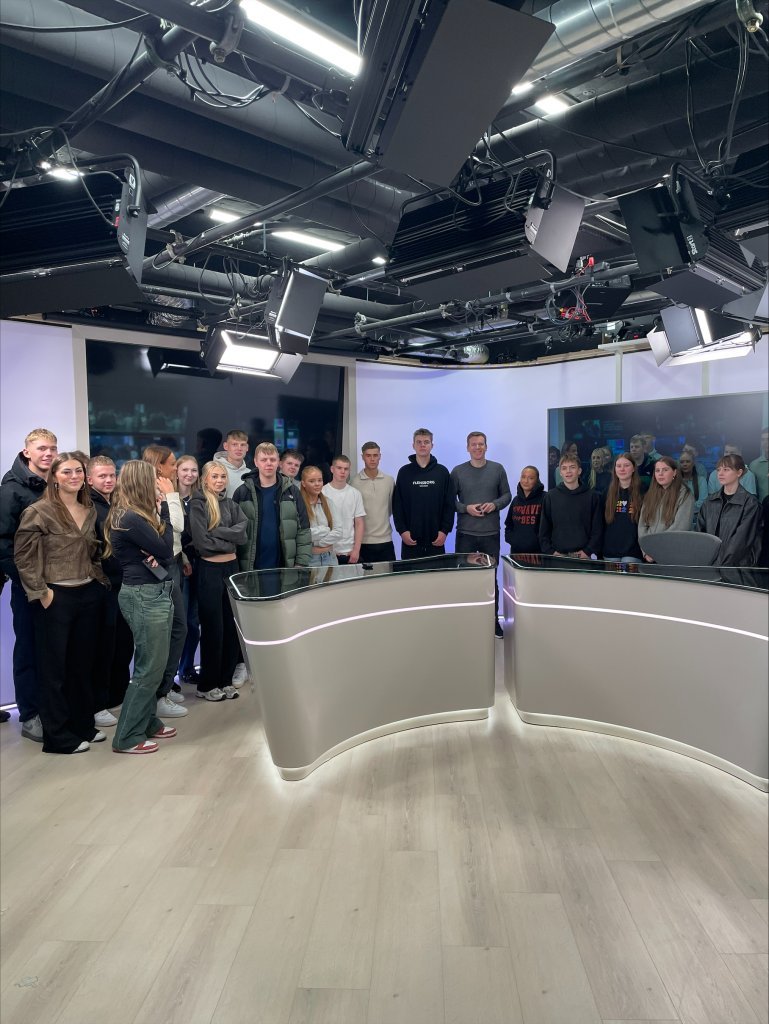 Nemendur í fjölmiðlafræði fóru í skemmtilega heimsókn í fjölmiðlasamsteypuna Sýn þar sem Kolbeinn Tumi Daðason, fréttastjóri Stöðvar 2 og Bylgjunnar, tók vel á móti þeim. Þau skoðuðu m.a. hljóð- og myndver fyrirtækisins, fréttastofu, íþróttadeild og útvarpsstöðvar og fræddust um dagleg störf fjölmiðlafólks.