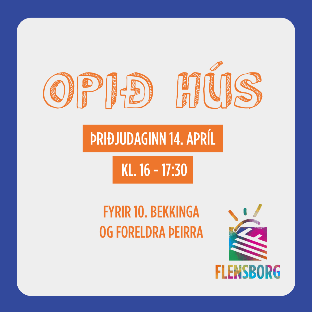 Flensborgarskólinn býður að þessu sinni 10. bekkingum og foreldrum þeirra á opið hús þann 14. apríl n.k. Skólastarfið í heild sinni verður kynnt með sérstakri áherslu á fjölbreyttar námsleiðir, sbr. námsbrautir til stúdentsprófs og svið á þeim, þar á meðal íþróttaafrekssvið. Fulltrúar nemenda verða á staðnum og kynna félagslíf meðal nemenda og svara öllum spurningum um það.