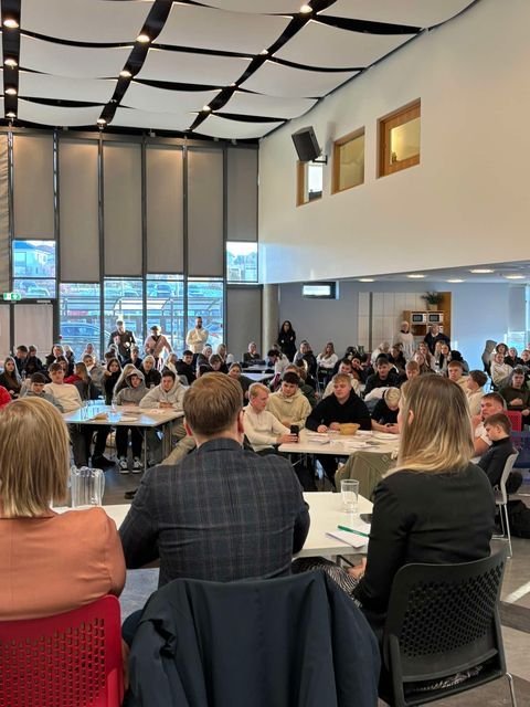 Nemendur, í samstarfi við Júlíu Bjarneyju stjórnmálafræðikennara og stjórn NFF, buðu til stjórnmálafundar í hádeginu í dag á sal skólans. Vel var mætt, bæði af frambjóðendum stjórnmálaflokka kjördæmisins og nemendum og starfsfólki skólans. Farið var yfir helstu áherslumál flokkanna og þeir spurðir út í m.a. samgöngumál, innflytjendamál og fleira.