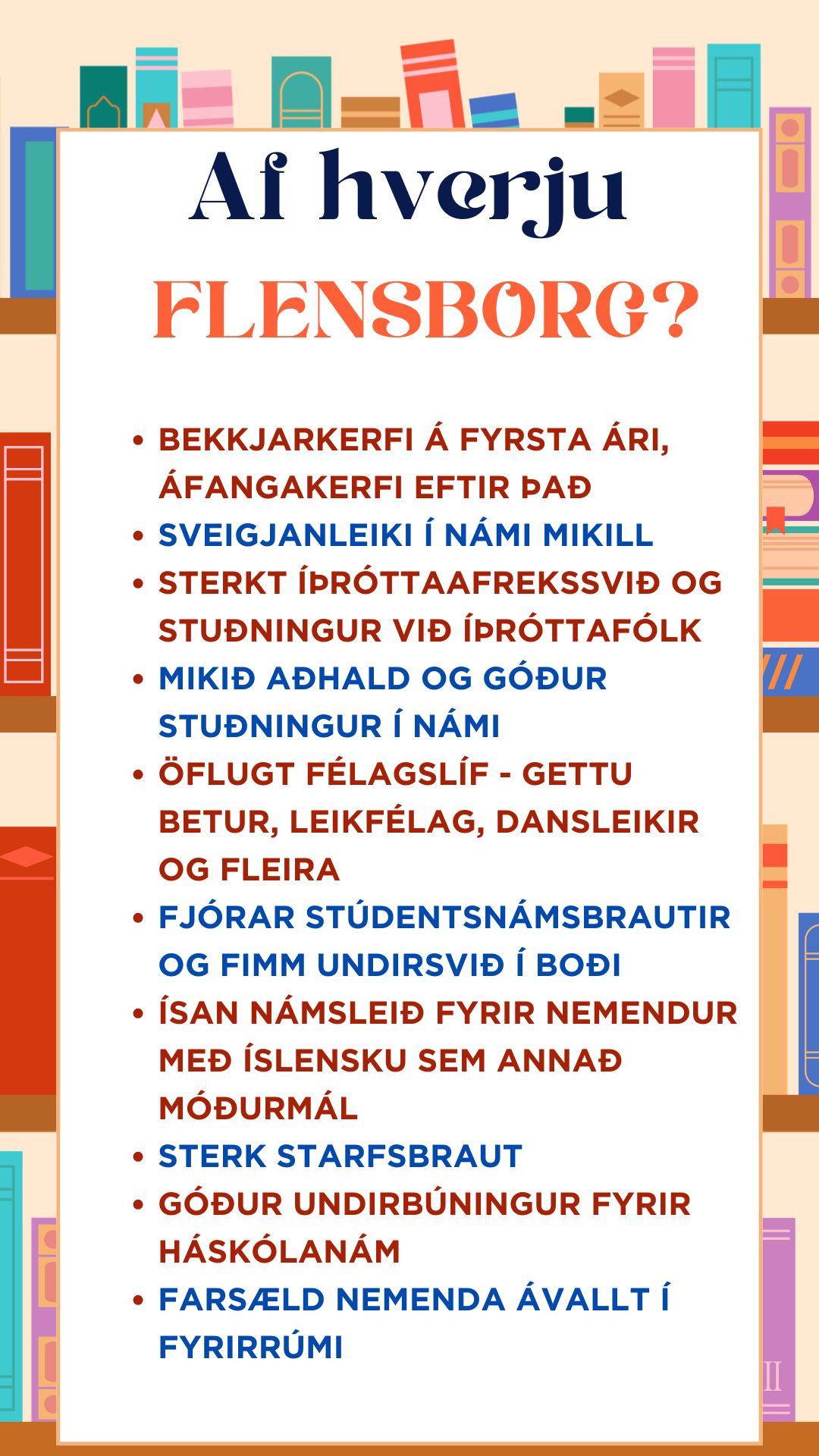 Þú færð allar upplýsingar um námið í Flensborg með því að horfa á myndband, skoða bækling eða kíkja á kynningarefnið hér á síðunni
